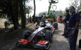 The McLaren driver slid into the gravel trap at the next corner and out of the race.