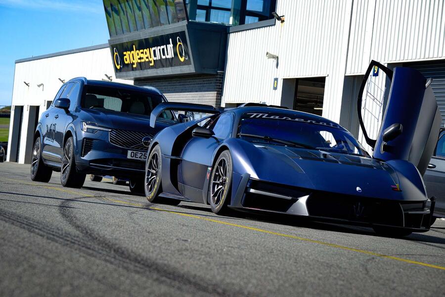 The itinerary? First to Anglesey Circuit, where the XC90 played a supporting role for the Maserati MCXtrema test. Photographer Jack Harrison could deliver a passably sharp tracking shot from the back of a donkey cart if need be, so the prospect of him hanging (suitably restrained with a harness) from the wide boot of an air-sprung premium SUV on a glass-smooth circuit all but guaranteed frames crisper than a porcelain poppadom. And they were.
