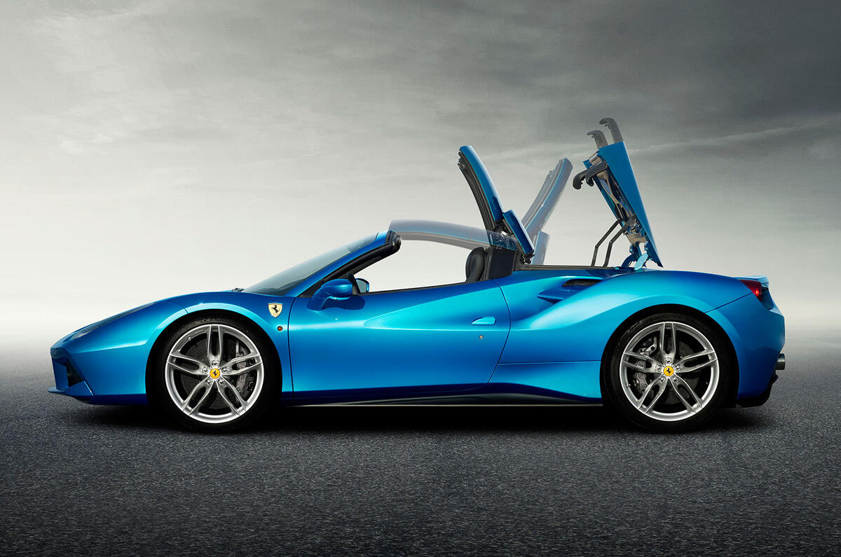 The Spider uses a similar folding hard-top to that of its predecessor, the 458 Spider. Ferrari says the hard-top is 25kg lighter than a cloth roof and takes just 14 seconds to fold up or down. When folded down, the roof lies flat on top of the engine.