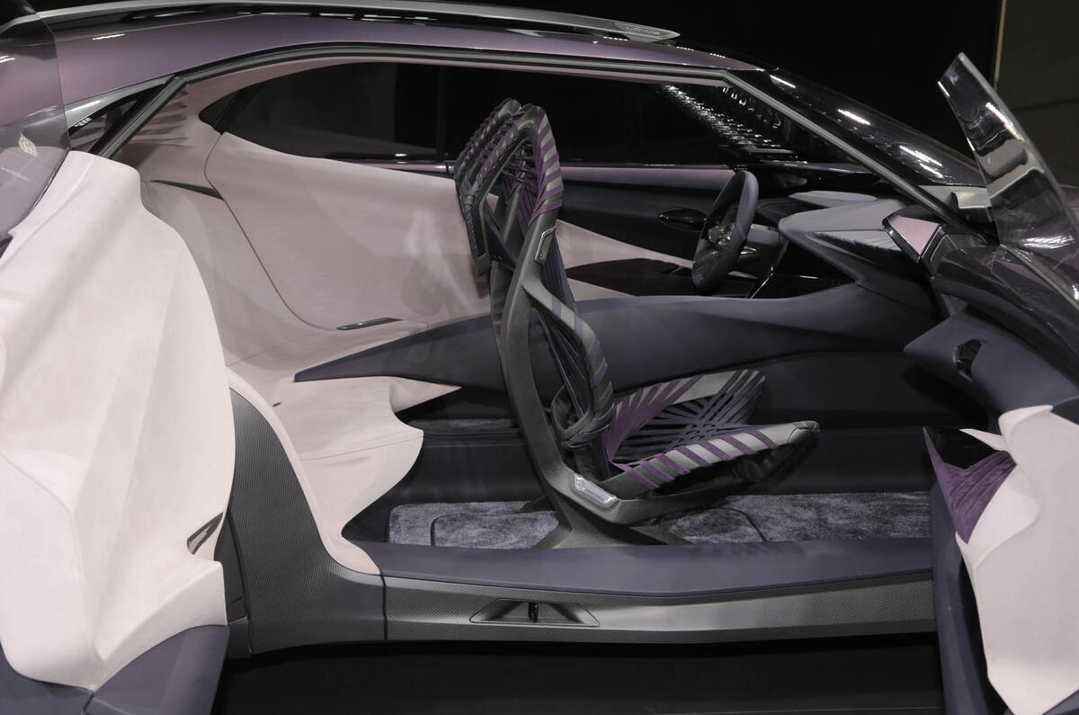 The striking-looking concept’s two rear doors curve out with the swollen wheel arches, and the door handles are all housed in the car’s middle due to the rear-hinged back doors.