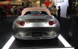 The rear deck of the Speedster is occupied by roll bars that blend into buttresses on the bootlid, meaning that the Speedster is a full-time open-top car. Mazda says it has replaced the standard car's doors and seats with new units made from carbonfibre, as well as fitting custom 16in alloy wheels. The concept weighs in at 973kg - significantly less than the 1057kg of the standard MX-5. The Spyder weighs in at 1043kg. Both cars are powered by the 2.0-litre engine offered in the standard MX-5.