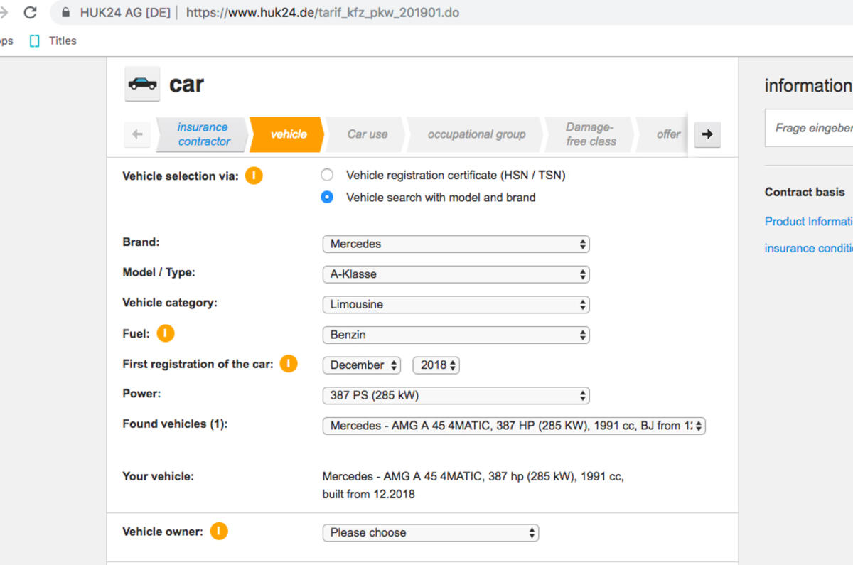 HUK24, an online insurance provider, has stored powertrain specs in a drop-down list for the new range-topping Mercedes-Benz A-Class, examples of which were registered for road use in Germany in December.