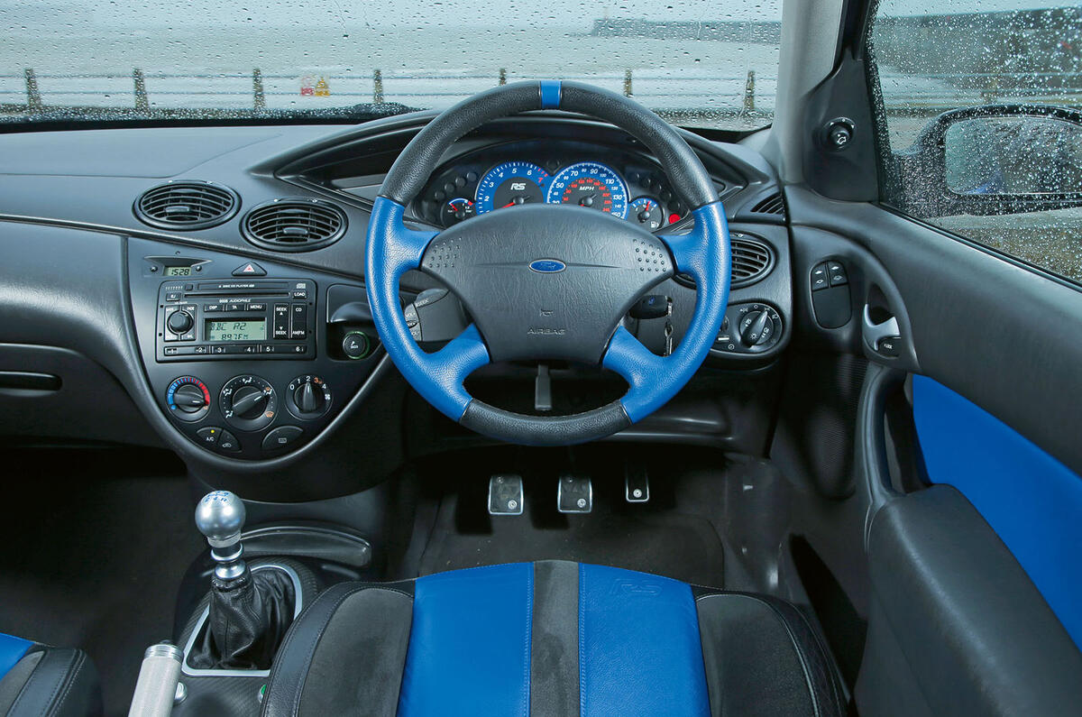 Thus was the 2002 Mk1 Ford Focus RS: unique bodywork, a limited-slip differential, carbonfibre added to the interior and a tasty turbocharged engine.