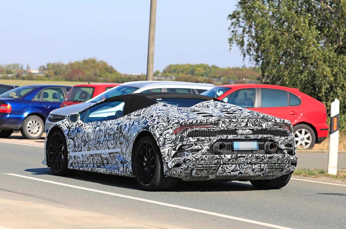 The new-for-2019 Ferrari 488 rival now adopts the Huracán Evo nameplate, reflecting its changes. The images reveal a number of styling changes designed to offer "aerodynamic superiority", with a new front bumper bringing enlarged intakes and an integrated splitter.