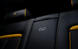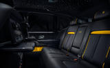 Inside, the Black Badge features a headliner woven with fibreoptic lights to resemble the night sky – a feature premiered in 2016 on the Rolls Royce Rolls-Royce Wraith. The seats are black leather, while yellow detailing features throughout.