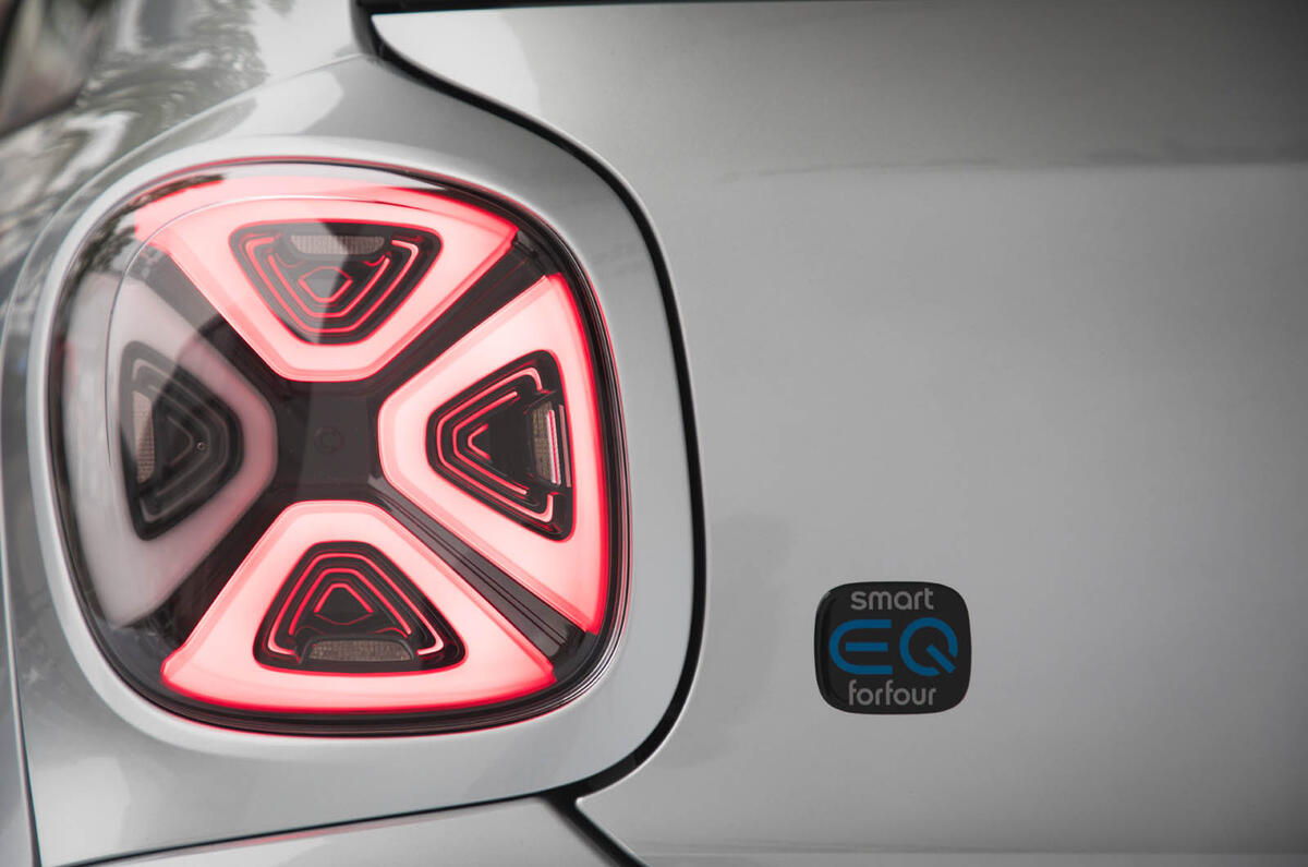 The exterior of the new Smart EQ trio, described as “radically simple” by Daimler design boss Gorden Wagener, is evolutionary. The grille has been lowered and made larger, albeit with much of the surface area blanked off, because EVs require less air cooling.