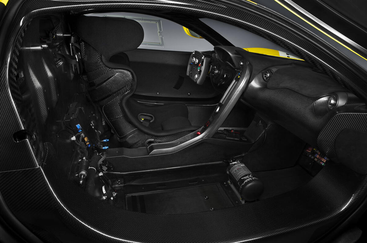 The Instant Power Assist System powertrain’s output has been significantly boosted over its application in the road-going P1. The twin-turbo 3.8-litre V8 now produces 789bhp (up from 727bhp in the standard P1) and the electric motor has 197bhp (up from 176bhp). The combined output is 986bhp, up from 903bhp. Weight has also been saved by removing powertrain features designed specifically for road use.