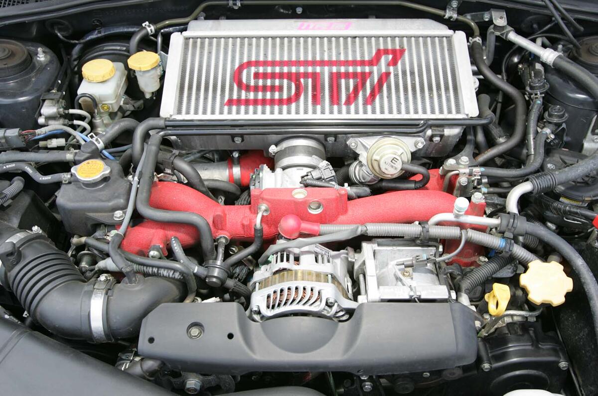However, perhaps overwhelmed by instructions not to drop the ball, the designers did just that when they gave the new car a pair of ugly headlights. Immediately, it became known by enthusiasts as the bug-eye. A couple of years later, they gave the Impreza a fresh set of peepers, only to have the car renamed the blob-eye. At least engine power rose to 222bhp. More important, the WRX STI was rolled out. It produced 261bhp and had a strengthened six-speed gearbox in place of the WRX’s five-speeder. Experts reckon this engine is the best. The STI also got quicker steering and a limited-slip front diff.