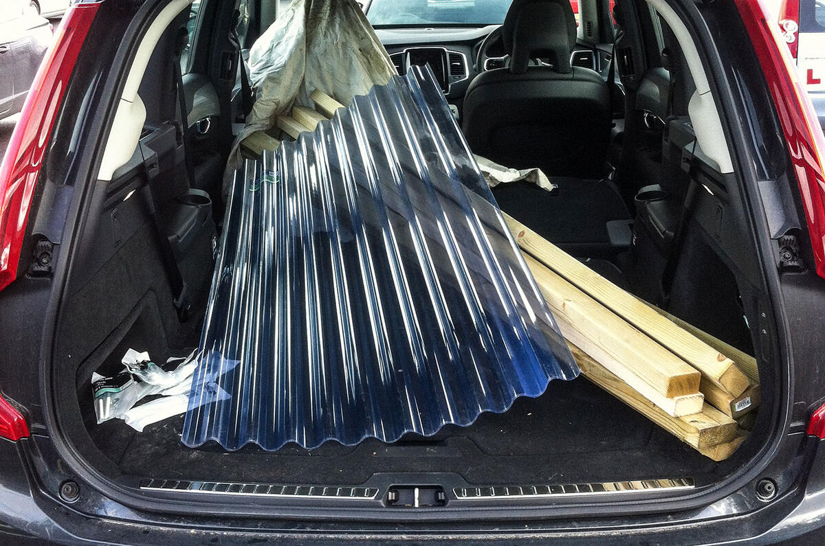 Which meant the XC90 had to swallow eight 2.4-metre-long battens and three 1.8m-long corrugated plastic roofing panels.