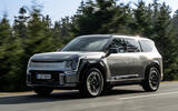 Suspension is by coil springs – there’s a bit of a thing in the US for lowering EV9s and they look rather good – and electronically-controlled dampers, which go firmer as you spool through drive modes that range from Eco at their most easy going, through to GT at their angriest; that one selectable via its own, vivid green, steering-wheel button.