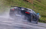 The cabin itself is little changed from previous iterations of the Aventador, albeit with more Alcantara and vast slabs of glossy carbonfibre for the door cards replete with leather pulls. There is good adjustability in the steering column and plenty of room for busy elbows, though head room is unforgivably poor and if the seats slid closer to the rear bulkhead, it would benefit taller drivers considerably.