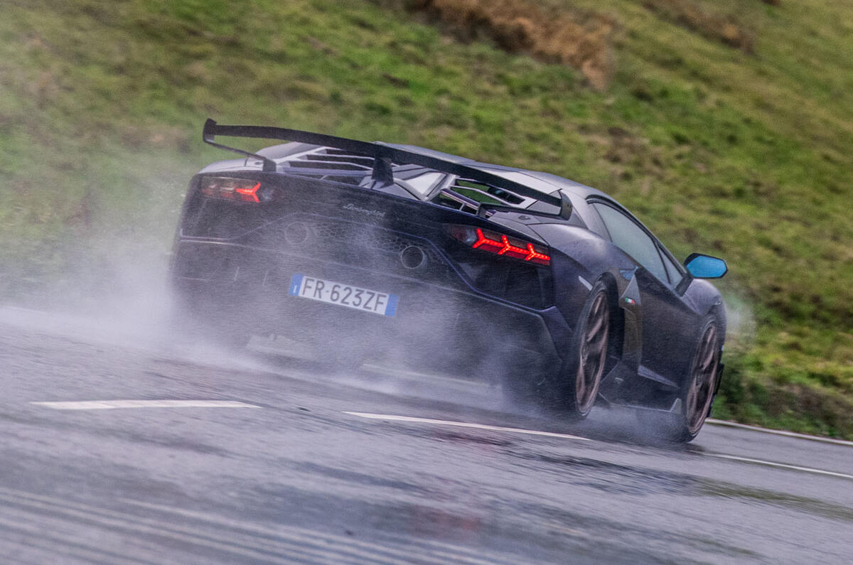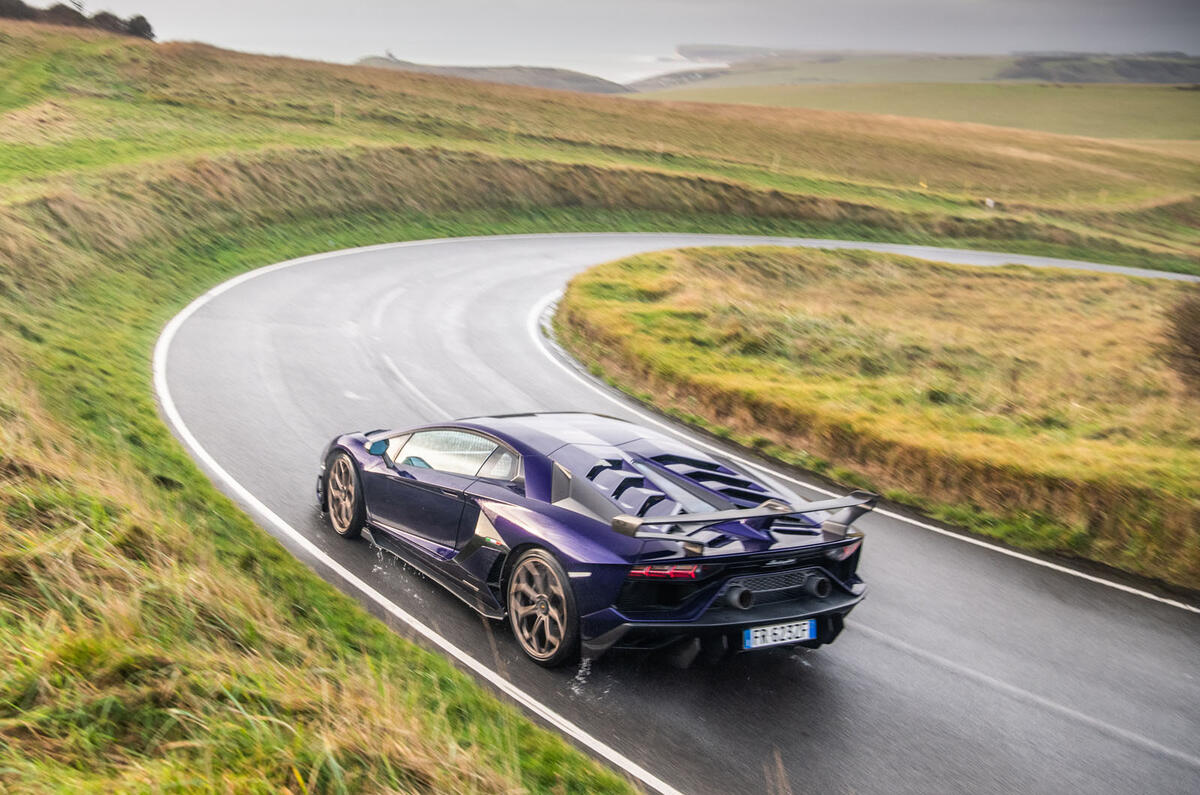 Should you never have the opportunity to slide aboard an SVJ, you can simulate the procedure by placing a child’s booster seat underneath your kitchen table. The roofline of this car is extraordinarily low – 60mm lower than a McLaren 720S – and the carbonfibre tub demands the seats are set deep within the broad footprint.